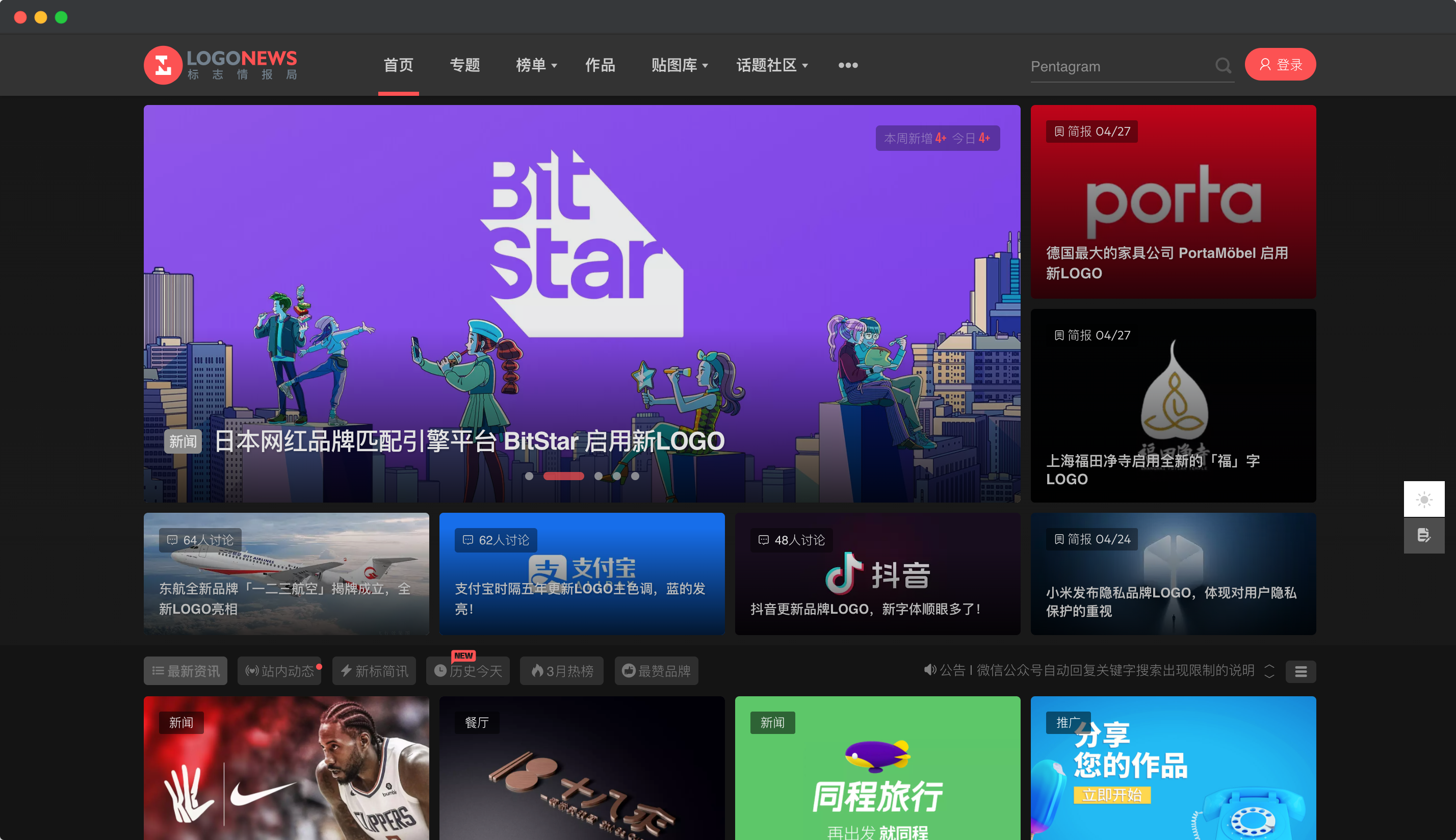 非常nice的中文logo设计新闻博客,能够看到最新的全球范围内品牌logo更新升级的新闻消息。